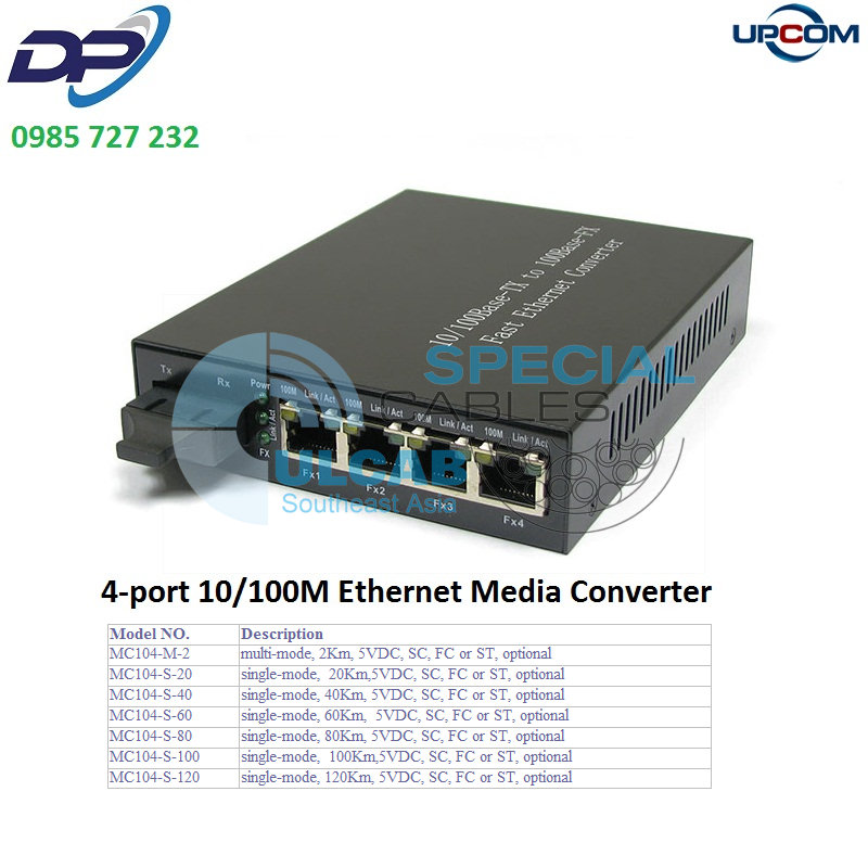Bộ chuyển đổi UPCOM ( MC104-S-80 ) 4-port 10/100M Ethernet, Single-mode, 80Km, 5VDC, SC, FC or ST, optional | Chính Hãng – Giá Tốt Nhất – Giá Rẻ Nhất
