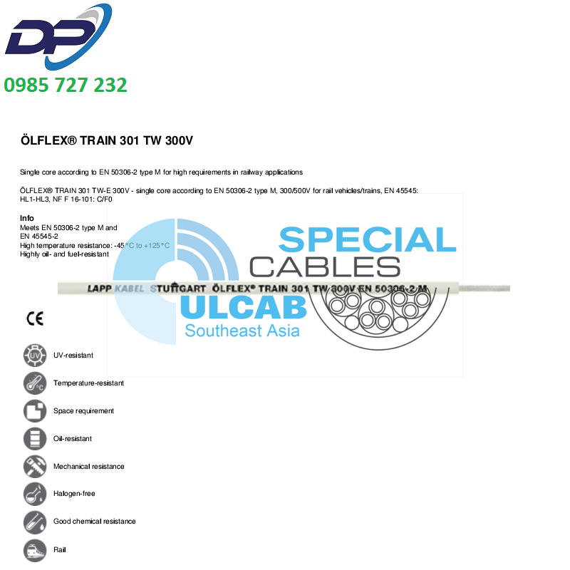ÖLFLEX® TRAIN 301 TW-E 300V – single core according to EN 50306-2 type M, 300/500V for rail vehicles/trains, EN 45545: HL1-HL3, NF F 16-101: C/F0