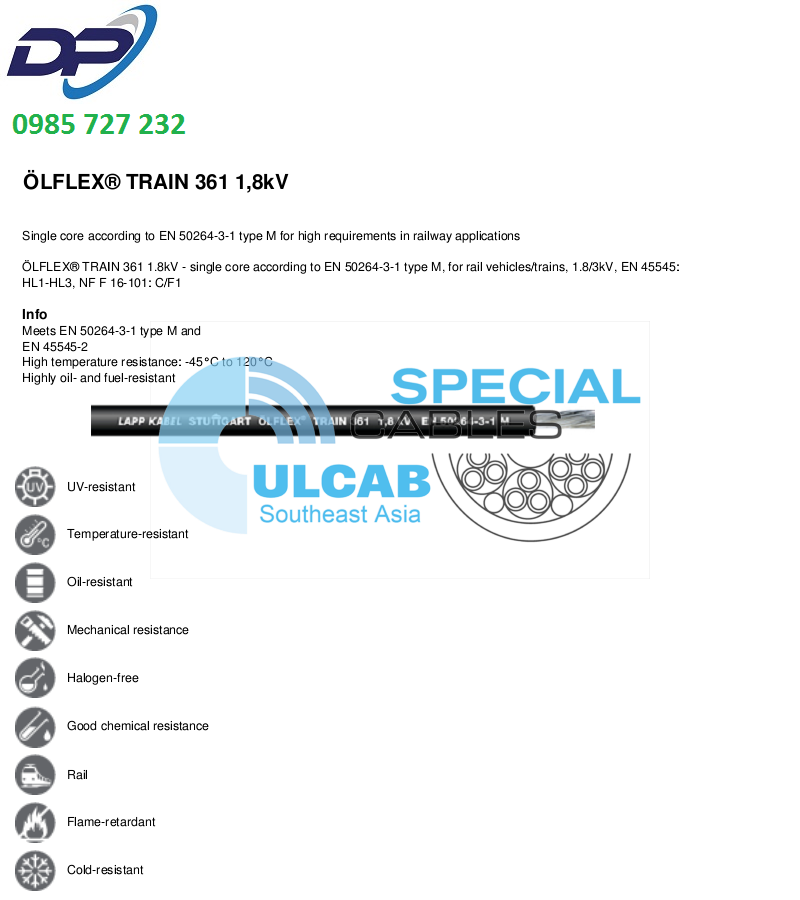 ÖLFLEX® TRAIN 361 1.8kV – single core according to EN 50264-3-1 type M, for rail vehicles/trains, 1.8/3kV, EN 45545: HL1-HL3, NF F 16-101: C/F1