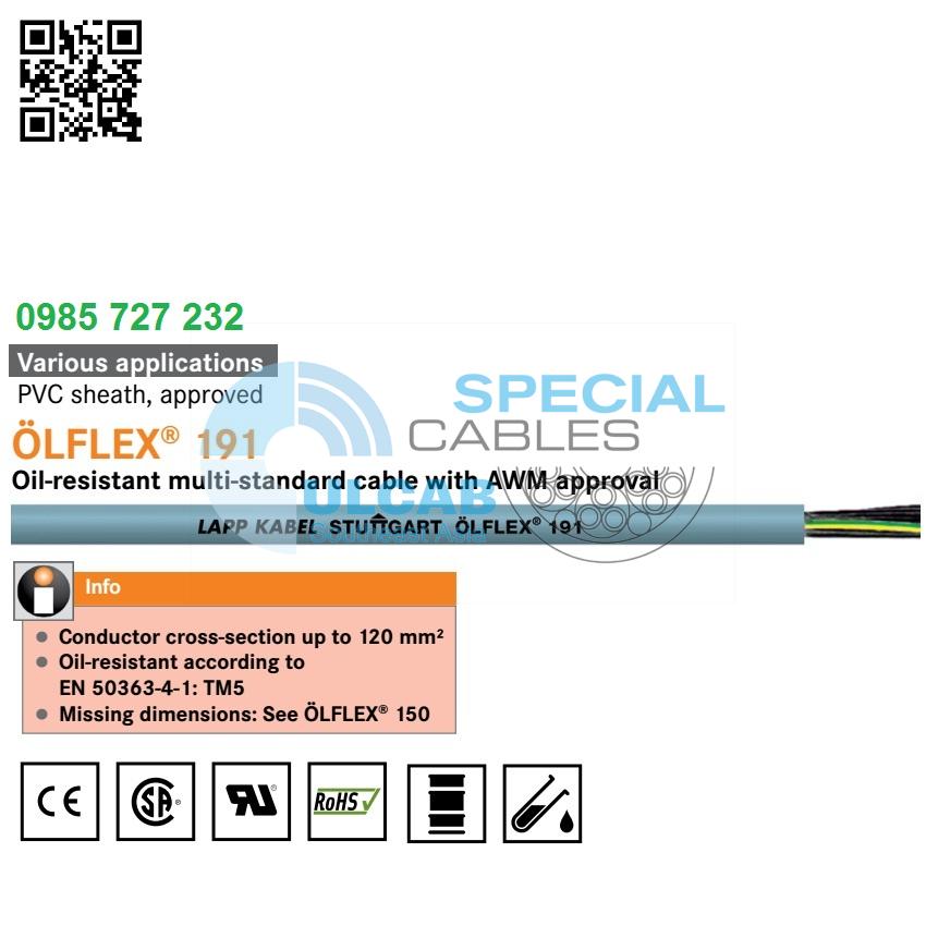 ÖLFLEX® 191 – PVC control cable with UL/CSA AWM, oil-resistant and flexible for various applications, UL/CSA: 600V, HAR: 300/500V