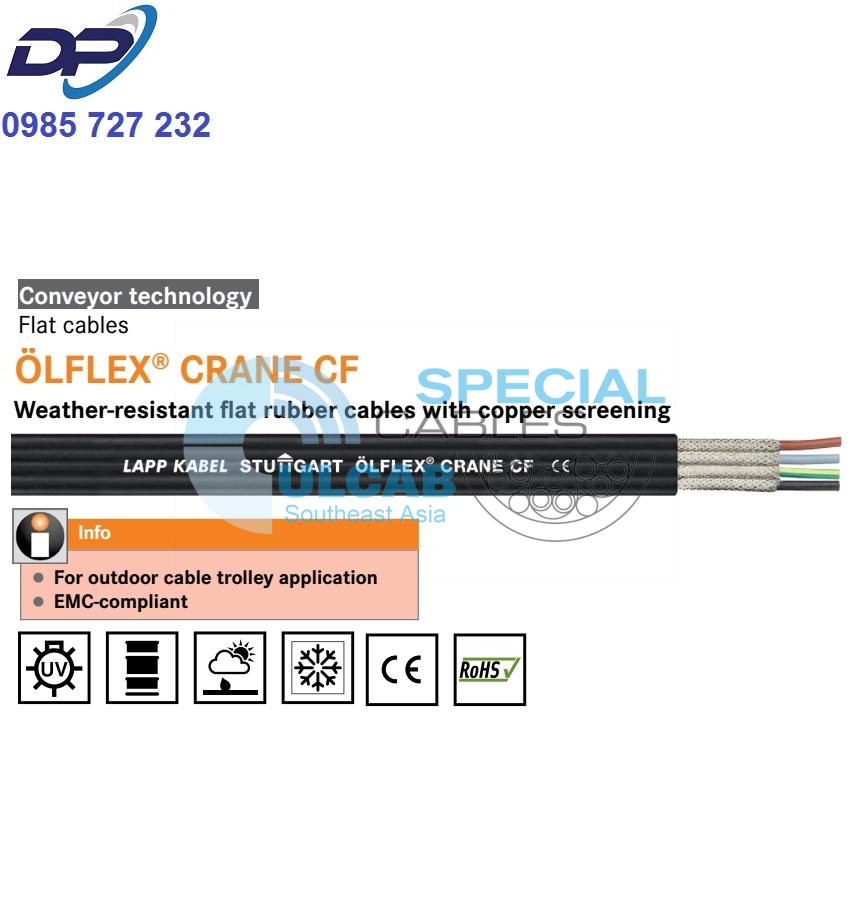 ÖLFLEX® CRANE CF – power and control cable, flat cable, crane/lift/cable trolley systems, rubber, 300/500 V, -25°C/+90°C, flame-retardant, outdoor use, core-shielded