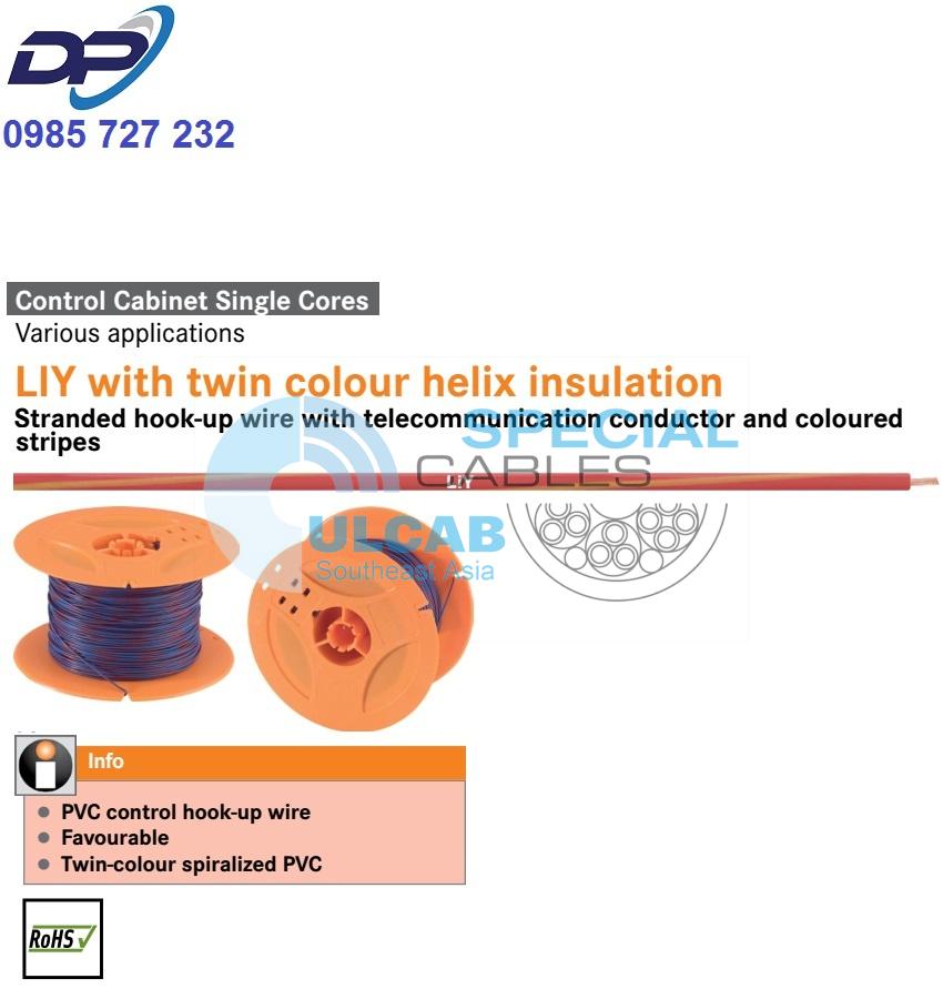 LIY, PVC control cable, low-voltage stranded wire for telecommunication devices and electronic assemblies, twin colour helix core insulation, flame-retardant, max. +70°C