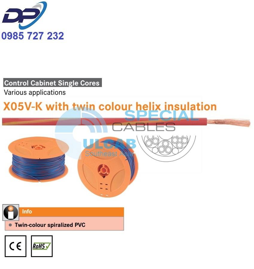 X05V-K, power and control cable for internal fixed wiring/assembling, PVC, 300/500 V, class 5, twin colour helix insulation, flame-retardant, on a reel