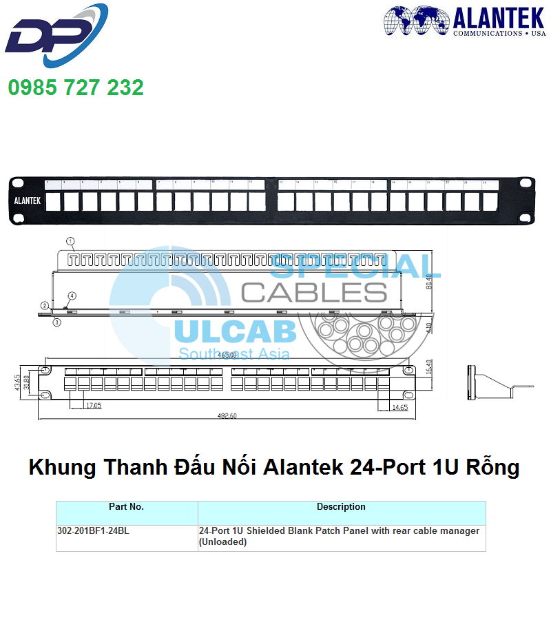Khung Thanh Đấu Nối Alantek ( 302-201BF1-24BL ) 1U 24-Port Shielded Blank Patch Panel with label | Chính Hãng – Giá Tốt Nhất