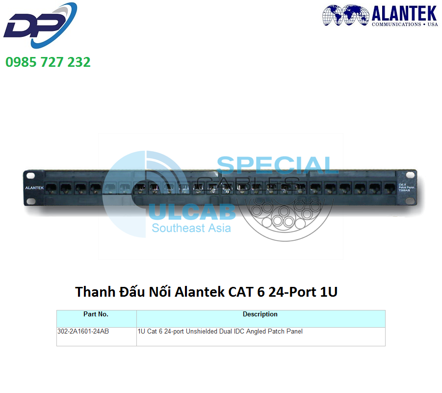 Thanh Đấu Nối Alantek ( 302-2A1601-24AB ) Patch Panel CAT 6 24-port 1U Unshielded Dual IDC Angled Patch Panel | Chính Hãng – Giá Tốt Nhất