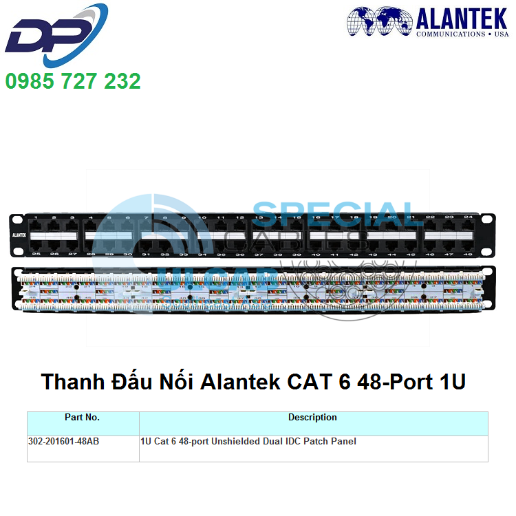 Thanh Đấu Nối Alantek ( 302-201601-48AB ) 1U Cat 6 48-port Unshielded Dual IDC Patch Panel | Chính Hãng – Giá Tốt Nhất