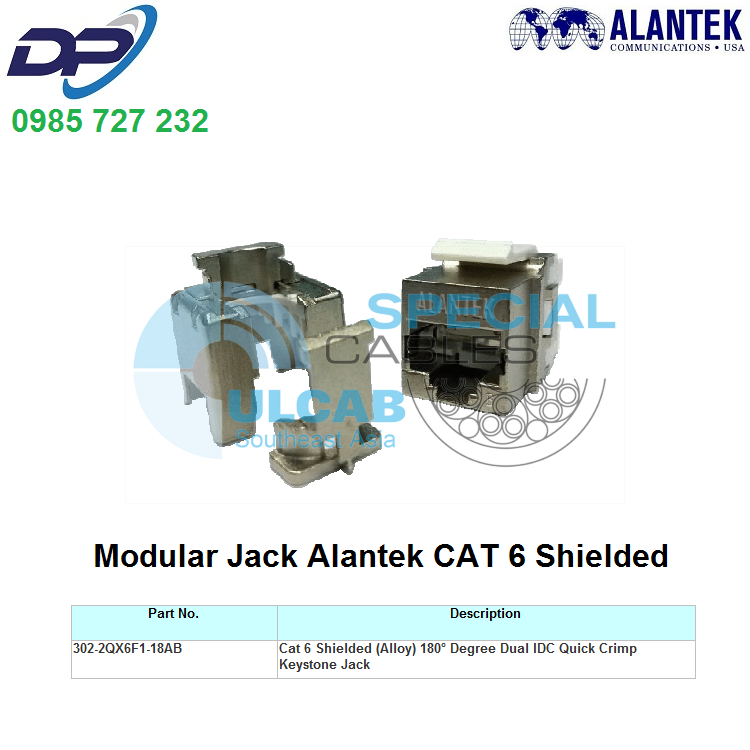 Nhân Mạng Alantek ( 302-2QX6F1-18AB ) Modular Jack Cat 6 Shielded 180° Quick Crimp Keystone Jack | Chính Hãng – Giá Tốt Nhất