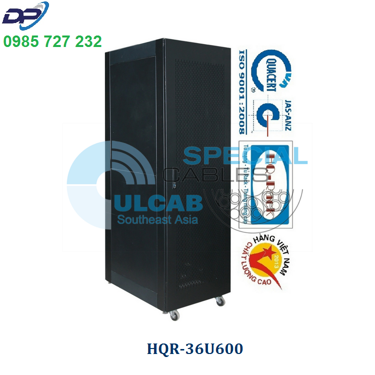 Tủ Rack 36U D600 – Tủ mạng 36U sâu 600 – Mã sản phẩm: HQR-36U600 – Kích thước tủ 1970 x 600 x 600 (Chiều cao x chiều rộng x chiều sâu) – Toàn bộ tủ được làm bằng tôn 1.2-1.8 mm và được sơn tĩnh điện màu đen chống gỉ 100% cứng cáp và bền đẹp – Tủ Rack Thiết kế theo kết cấu tháo dời thuận tiện cho việc đóng gói, vận chuyển, lắp ráp – Tủ gồm 04 Cánh hông bắt vít, dễ dàng tháo lắp, 04 Quạt hút gió công suất 24W, 04 Bánh xe điều hướng, xoay 360 độ. Cố định bằng 04 chân tăng cứng.