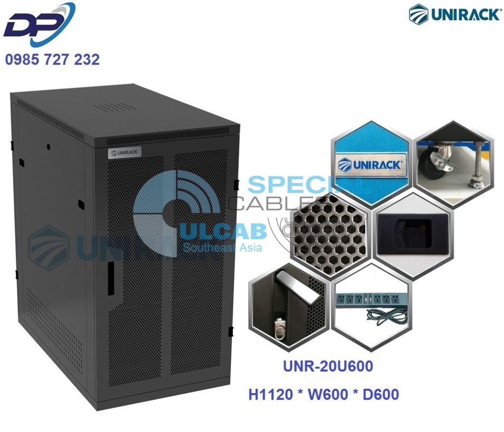 Tủ Rack 20U D600 – Tủ mạng 20U sâu 600 – Mã sản phẩm: UNR-20U600 – Kích thước tủ H.1120 x W.600 x D.600 (Chiều cao x chiều rộng x chiều sâu) – Toàn bộ tủ được làm bằng tôn 1.2-2.0 mm và được sơn tĩnh điện màu đen chống gỉ 100% cứng cáp và bền đẹp – Tủ Rack Thiết kế theo kết cấu tháo dời thuận tiện cho việc đóng gói, vận chuyển, lắp ráp – Tủ gồm 04 cánh mở bốn bên, 02 quạt gió – Tủ rack có 04 cánh (2 cánh hông có thể tháo dời và 2 cánh trước sau)
