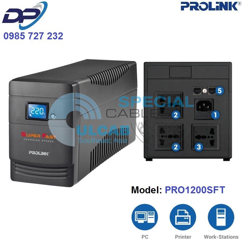Bộ lưu điện PROLINK ( PRO1200SFT ) Line Interactive UPS 1200VA with AVR | Chính Hãng – Giá Rẻ – Giá Tốt Nhất
