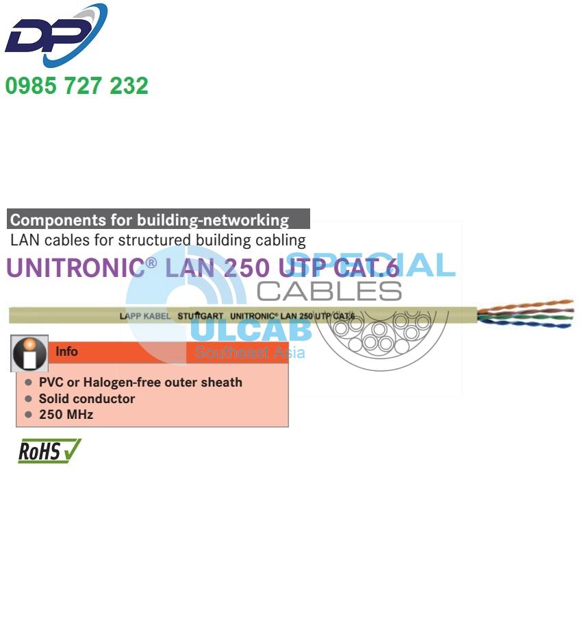 | 3801501K | LAN 250 UTP CAT.6 | 4x2x23 AWG | 6,4 | PVC | 17,9 | 40 |