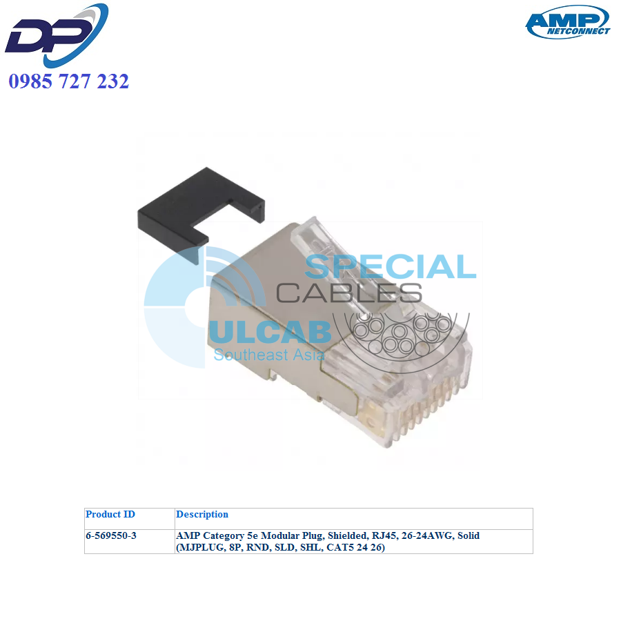 Hạt Mạng AMP ( 6-569550-3 ) Category 5e Modular Plug, Shielded, RJ45, 26-24AWG, Solid | Chính Hãng – Giá Tốt Nhất