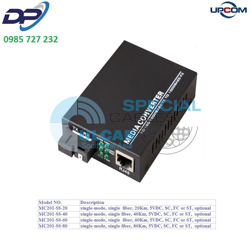 Bộ chuyển đổi UPCOM ( MC201-SS-60 ) 1-Port 10/100/1000M Ethernet, Single-mode, single fiber, 60Km, 5VDC, SC, FC or ST, optional | Chính Hãng – Giá Tốt Nhất – Giá Rẻ Nhất