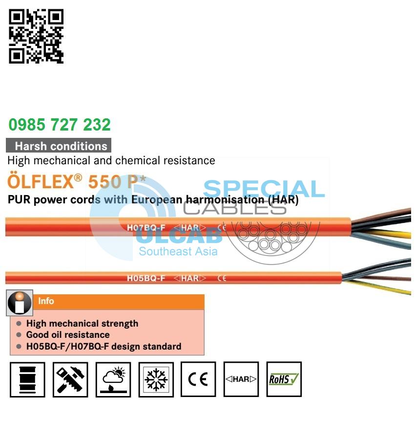 ÖLFLEX® 550 P – PUR connection cable, harmonised according H05BQ-F / H07BQ-F type for oil- and abrasion-resistant use with hand-held electrical equipment or construction machinery.