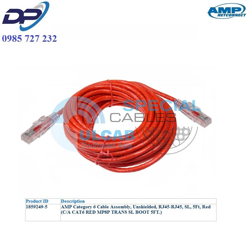 Dây Nhẩy AMP ( 1859249-5 ) Patch Cord CAT 6 Cable Assembly, Unshielded, RJ45-RJ45, SL, 5Ft, Red | Chính Hãng – Giá Tốt Nhất