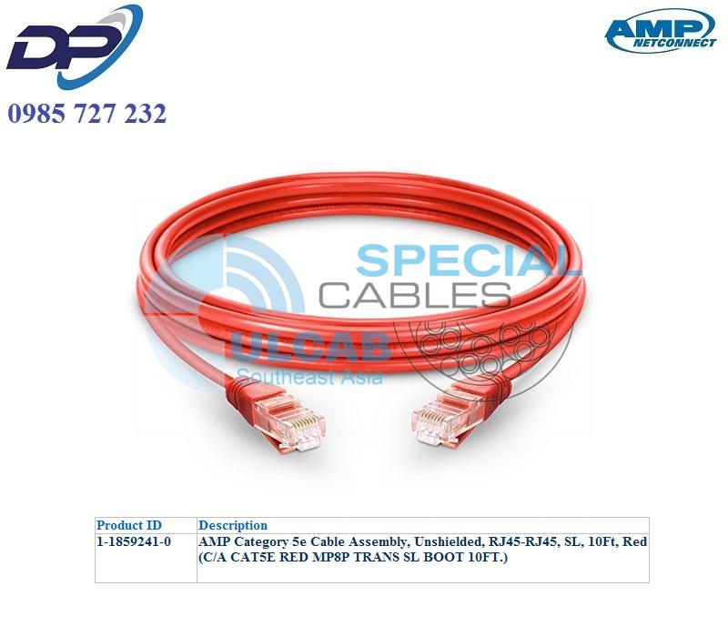 Dây Nhẩy AMP ( 1-1859241-0 ) Patch Cord CAT 5e Cable Assembly, Unshielded, RJ45-RJ45, SL, 10Ft, Red | Chính Hãng – Giá Tốt Nhất