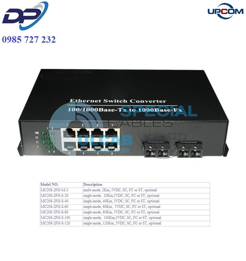 Bộ chuyển đổi UPCOM ( MC208-2FG-S-120 ) 8-port 10/100/1000M Ethernet +2-port 1000M fiber, Single-mode, 120Km, 5VDC, SC, FC or ST, optional | Chính Hãng – Giá Tốt Nhất – Giá Rẻ Nhất
