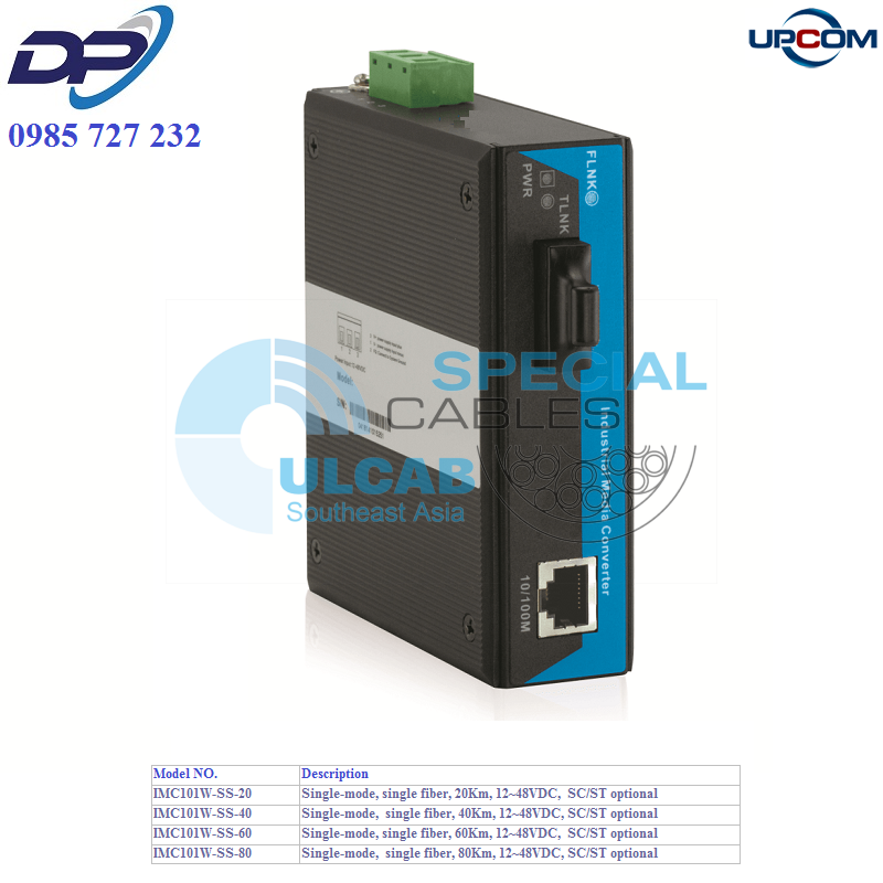 Bộ chuyển đổi UPCOM ( IMC101W-SS-80 ) 1-port 10/100M Industrial Media Converter, Single-mode, single fiber, 80Km, 12~48VDC, SC/ST optional | Chính Hãng – Giá Tốt Nhất – Giá Rẻ Nhất