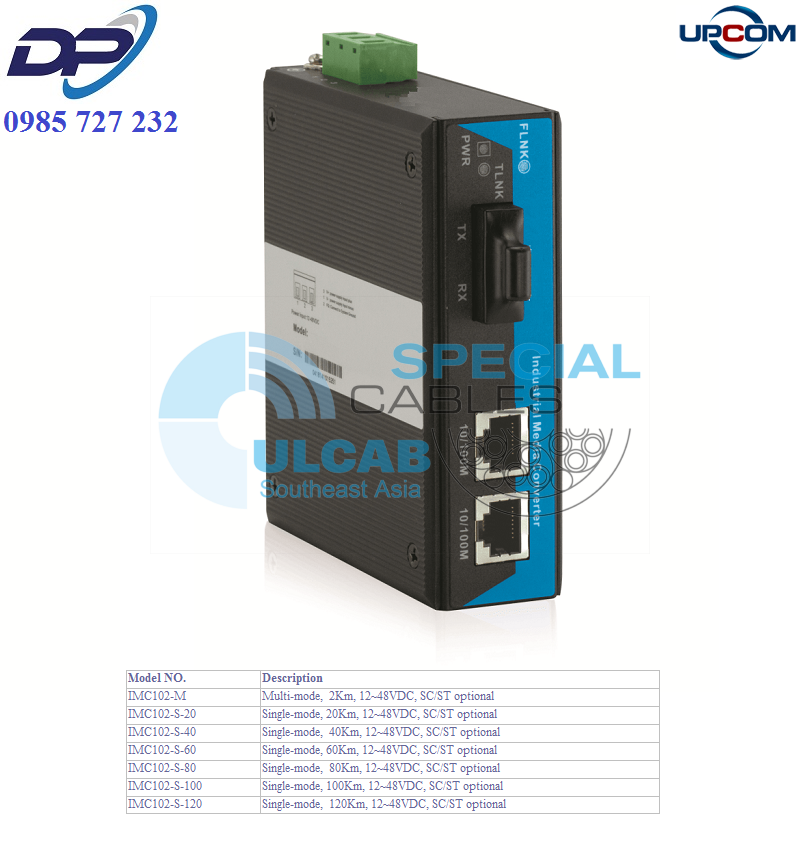 Bộ chuyển đổi UPCOM ( IMC102-S-20 ) 2-port 10/100M Industrial Media Converter, Single-mode, 20Km, 12~48VDC, SC/ST optional | Chính Hãng – Giá Tốt Nhất – Giá Rẻ Nhất