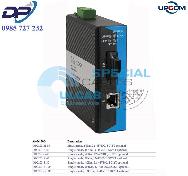 Bộ chuyển đổi UPCOM ( IMC201-S-20 ) 1-port 10/100/1000M Ethernet+ 1-port 1000Base-FX, Single-mode, 20Km, 12~48VDC, SC/ST optional | Chính Hãng – Giá Tốt Nhất – Giá Rẻ Nhất