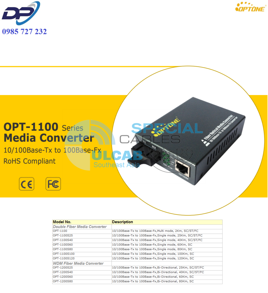 Bộ Chuyển Đổi OPTONE ( OPT-1100S40 ) 1-Port Ethernet 10/100Base-Tx to 100Base-Fx, Single mode, 40Km, SC/ST/FC | Chính Hãng – Giá Tốt Nhất – Giá Rẻ Nhất