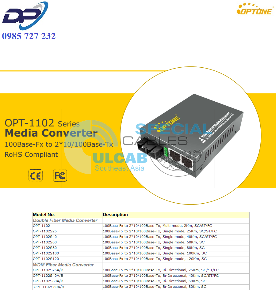 Bộ Chuyển Đổi OPTONE ( OPT-1102S120 ) 2-Port Ethernet 10/100Base-Tx to 100Base-Fx, Single mode, 120Km, SC/ST/FC | Chính Hãng – Giá Tốt Nhất – Giá Rẻ Nhất