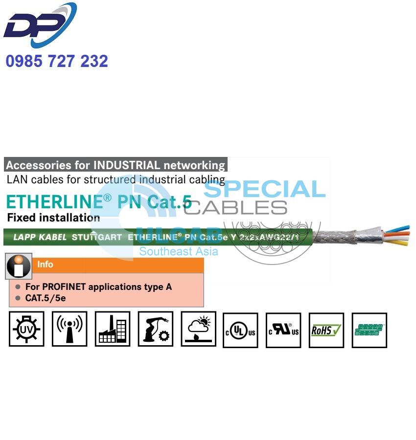 Cáp Mạng LAPP KABEL ( 2170494 ) 2 x 2 x AWG22/1 | ETHERLINE® PN Cat.5e YY | Chính Hãng – Chống Nhiễu – Giá Tốt Nhất