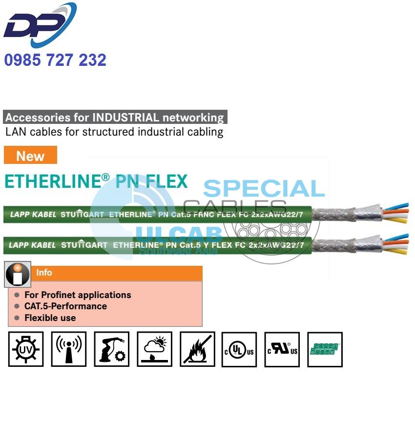 Cáp Mạng LAPP KABEL ( 2170886 ) 2 x 2 x AWG22/7 | ETHERLINE® PN Cat.5 Y FLEX FC | Chính Hãng – Chống Nhiếu – Giá Tốt Nhất