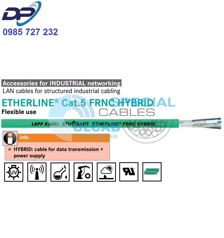 Cáp Mạng LAPP KABEL ( 2170887 ) 2x2xAWG22/7 + 4×1.5 | ETHERLINE® Cat.5 FRNC HYBRID | Chính Hãng – Chống Nhiễu – Giá Tốt Nhất