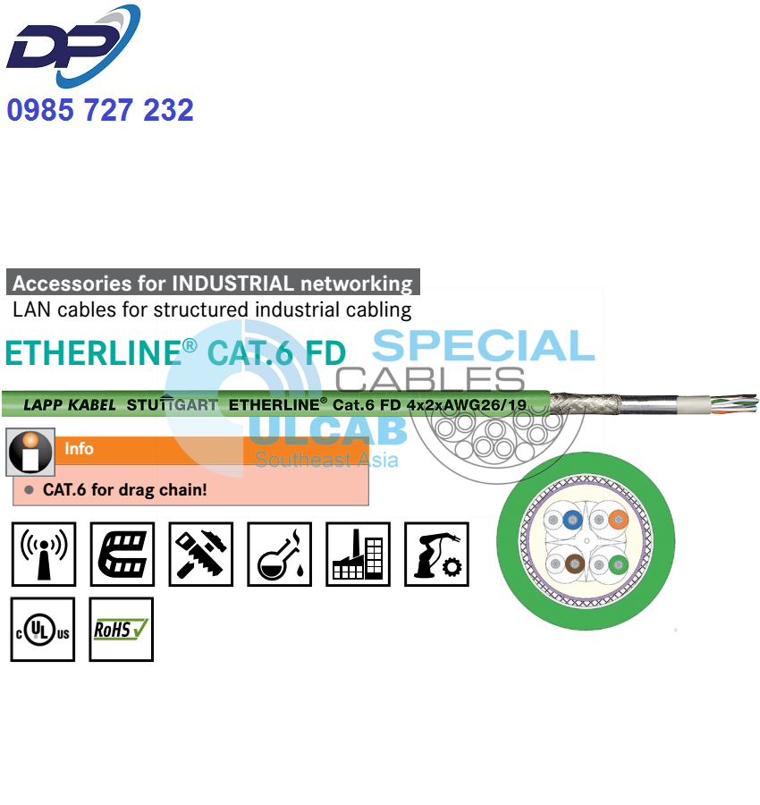Cáp Mạng LAPP KABEL ( 2170488 ) 4 x 2 x AWG26/19 | ETHERLINER CAT.6 FD | Chính Hãng – Chống Nhiễu – Giá Tốt Nhất