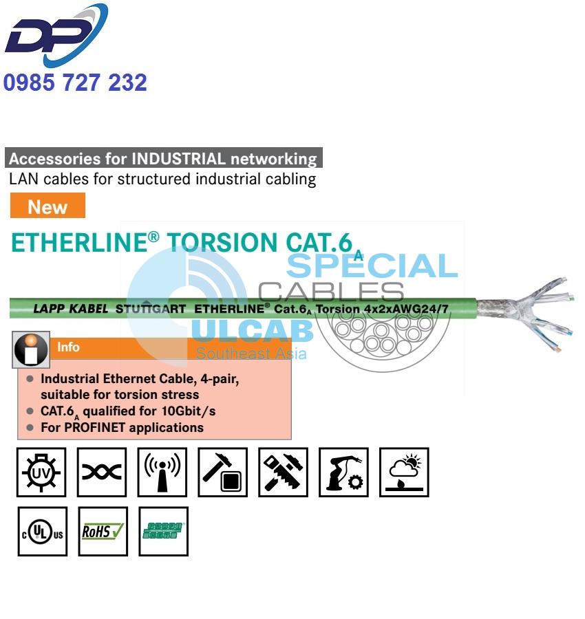Cáp Mạng LAPP KABEL ( 2170482 ) 4 x 2 x AWG24/7 | ETHERLINE® TORSION Y CAT6A | Chính Hãng – Chống Nhiễu – Giá Tốt Nhất