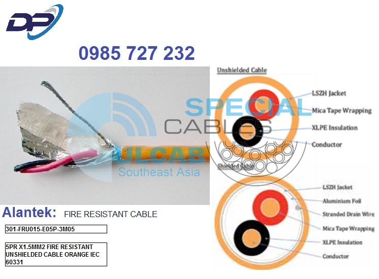 | 5 | 301-FRS015-B01P-3M05 | Alantek 1Pair X 1.5MM2 FR Shielded Cable, Orange IEC 60331 & BS 6387 C W Z | rl (500m) |