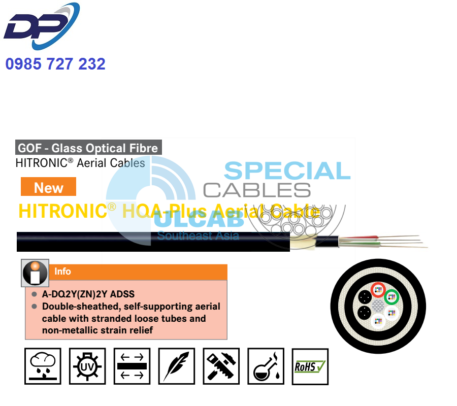 Cáp Quang LAPP KABEL ( 26644972 ) 72 fibres, 72 Cores, 72 Fiber, 72 FO 9/125 OS2 Single-mode | HITRONIC® HQA-Plus Aerial Cable | Chính Hãng – Giá Tốt Nhất