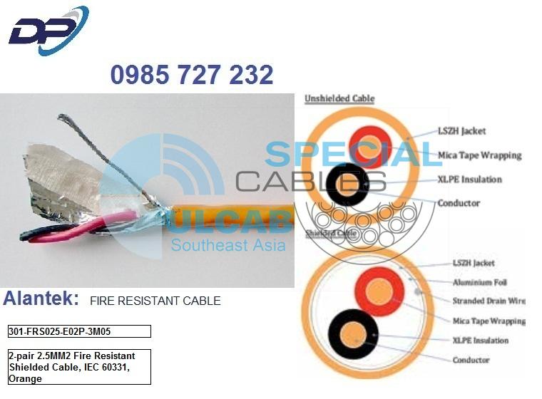 | 6 | 301-FRS025-B01P-3M05 | Alantek 1Pair X 2.5MM2 FR Shielded Cable, Orange IEC 60331 & BS 6387 C W Z | rl (500m) |