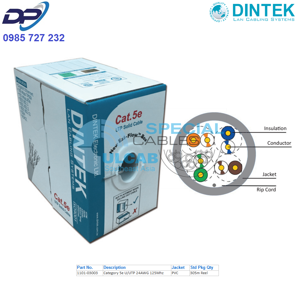 Cáp Mạng DINTEK ( 1101-03003 ) CAT5E U/UTP 4Pair 24AWG PVC | Chính Hãng – Giá Tốt Nhất