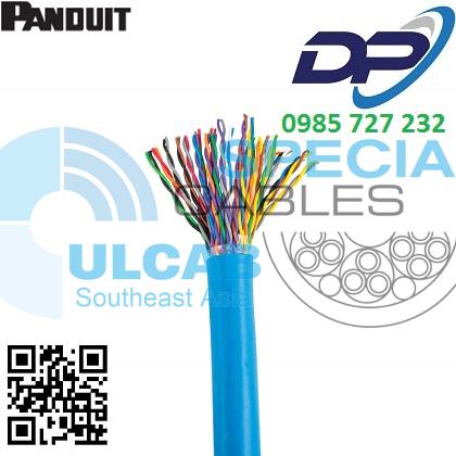 Copper cable, category 5e UTP, plenum (CMP), 25-pair, conductors are 24 AWG construction with FEP insulation, twisted in pairs and placed in a low smoke, flame-retardant, fluoropolymer jacket, blue.