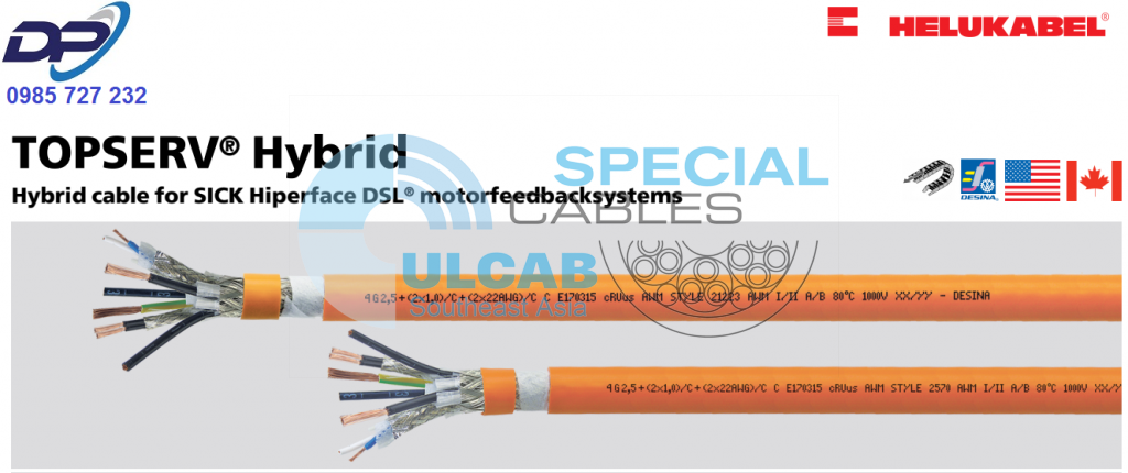 Hybrid cable for SICK Hiperface DSL® motorfeedbacksystems |