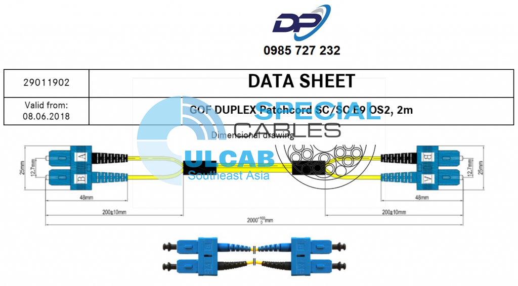 LAPP KABEL (29011902) Dây Kết Nối Patch Cord Quang SC-SC Singlemode OS2 9/125 Duplex LSZH 2m
