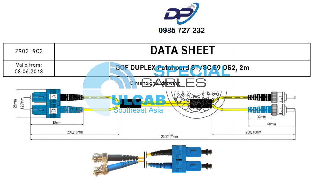 LAPP KABEL (29021902) Dây Kết Nối Patch Cord Quang ST-SC Singlemode OS2 9/125 Duplex LSZH 2m