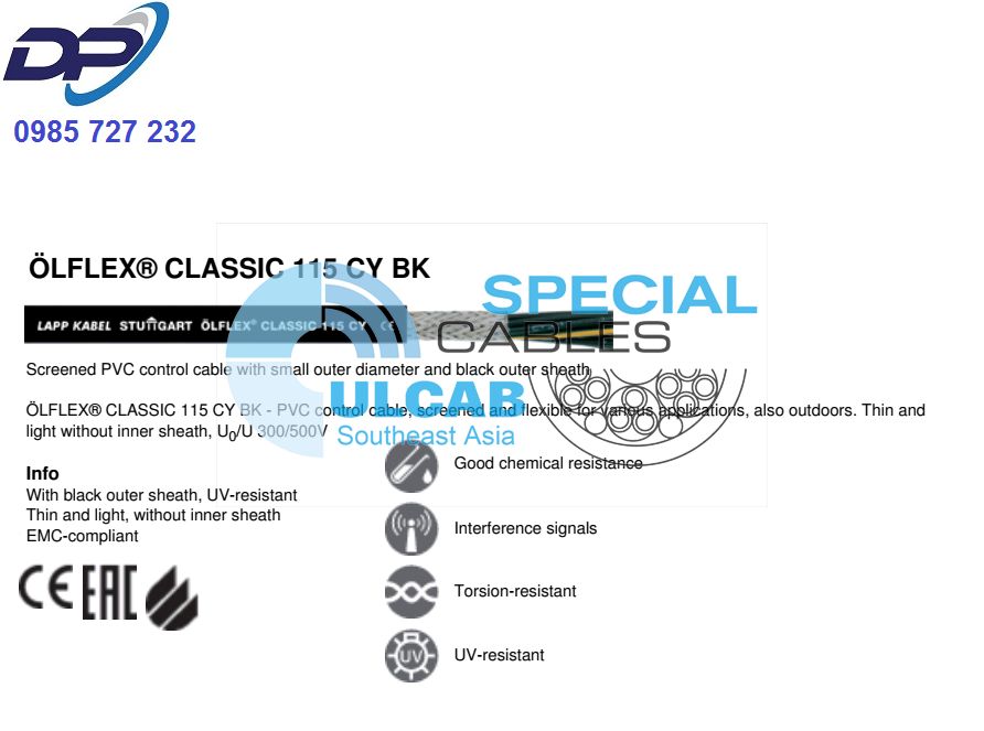 Dây Cáp LAPP KABEL ÖLFLEX® CLASSIC 115 CY BK | Chính Hãng – Chống Nhiễu Lưới – Giá Tốt Nhất