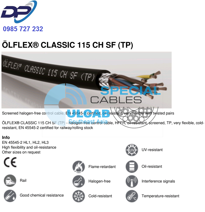 Dây Cáp LAPP KABEL ÖLFLEX® CLASSIC 115 CH SF (TP) | Chính Hãng – Vẵn Xoắn – Chống Nhiễu Lưới – Giá Tốt Nhất