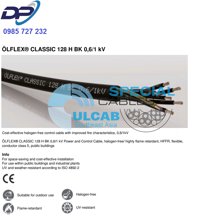 Dây Cáp LAPP KABEL ÖLFLEX® CLASSIC 128 H BK 0,6/1 kV | Chính Hãng – Giá Tốt Nhất