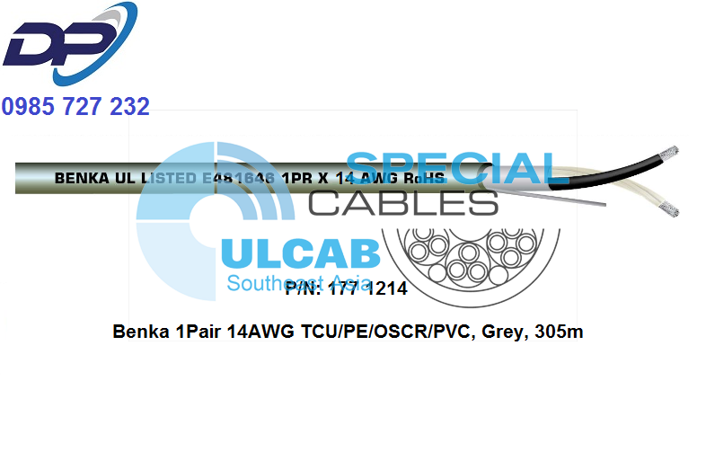 “177 1214” Cáp Tín Hiệu Benka 1Pair 14AWG TCU/PE/OSCR/PVC, Grey, 305m | Chính Hãng – Chống Nhiễu – Chống Bén Cháy