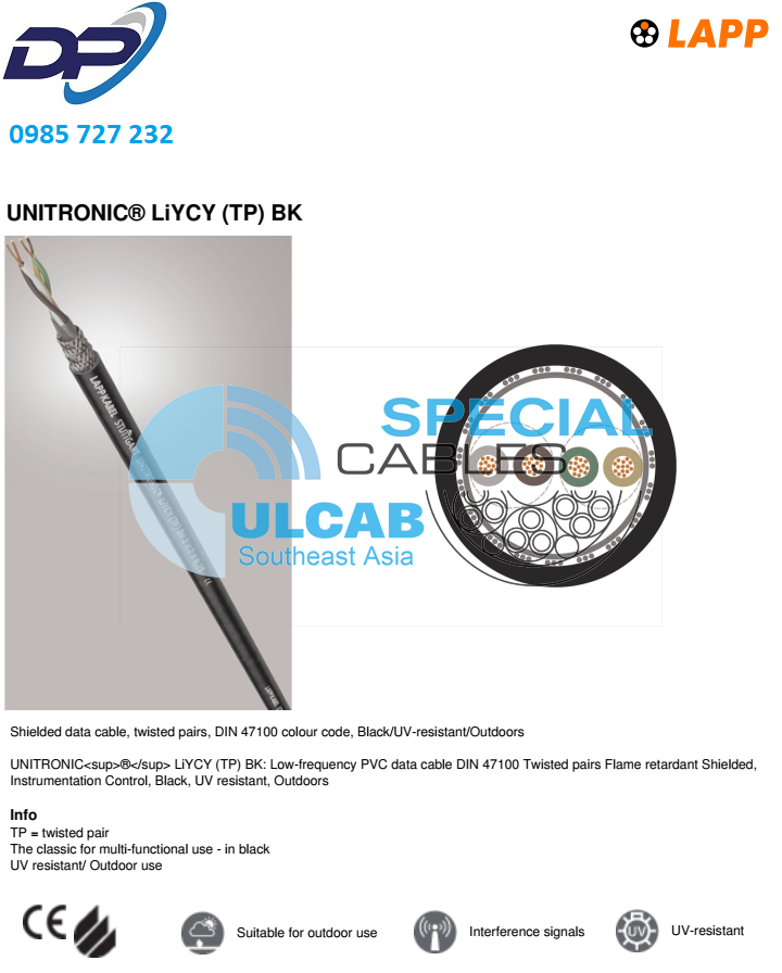 Cáp Tín Hiệu LAPP KABEL UNITRONIC® LiYCY (TP) BK | Chính Hãng – Vặn Xoắn – Chống Nhiễu – Ngoài Trời – Giá Tốt Nhất