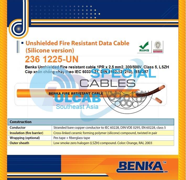 “236 1225-UN” Cáp Chống Cháy Benka 1PR x 2.5 mm2 Cu/Silicon/LSZH, Orange, 500m | Cáp xoắn – chống cháy – Chính Hãng – Giá Tốt Nhất