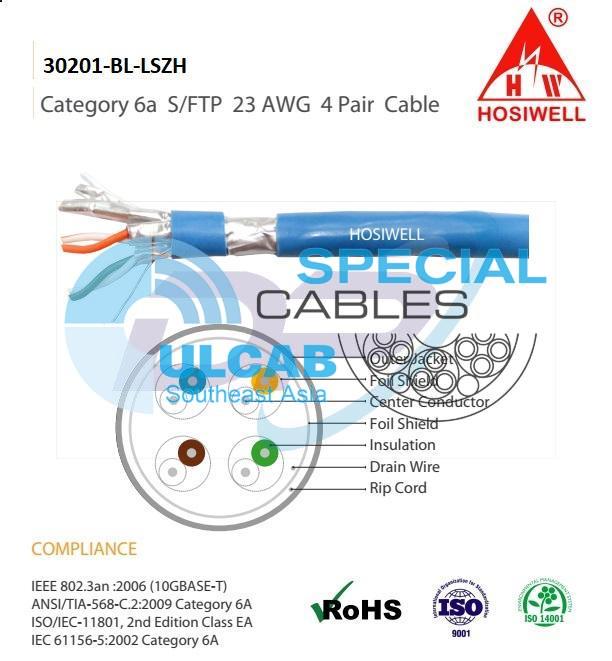“30201-BL-LSZH” Cáp Mạng Hosiwell Lan Cable Cat.6A F/FTP 4P x 23 AWG 500MHz, 305m/Box, LSZH jacket, Blue | Chính Hãng – Chống Nhiễu – Giá Tốt Nhất